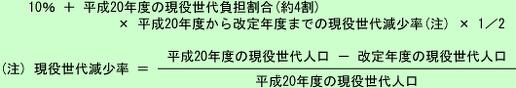 このため、「現役世代人口の減少」によって、現役世代一人当たりの負担の増加については、75歳以上の高齢者と現役世代とで半分ずつ分かち合うよう、75歳以上の高齢者の保険料の負担割合は、現役世代減少率の1/2の割合で引き上げ、後期高齢者支援金の負担率は引き下げる調整をしています。