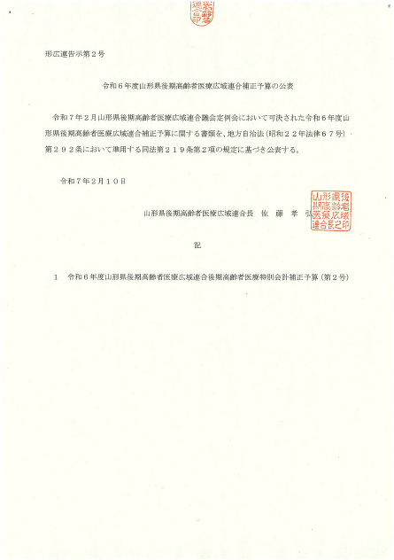 令和6年度山形県後期高齢者医療広域連合補正予算の公表について