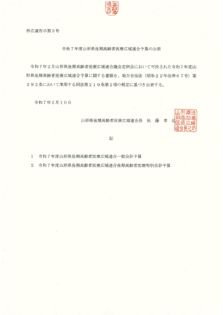 令和7年度山形県後期高齢者医療広域連合予算の公表について