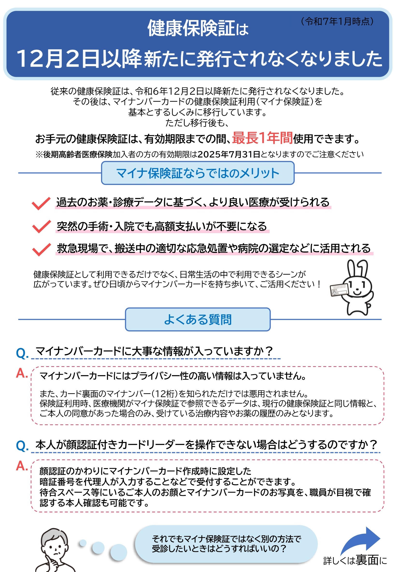 加入者には、「後期高齢者医療被保険者証」を交付していましたが、令和6年12月1日をもって被保険者証の新規発行は終了しました。